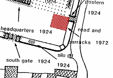 In 1972, Newcastle University conducted a preliminary excavation. The dig focused on a 42-square-metre area along the via quintana (an internal road) and aimed to explore lesser-known parts of the fort, particularly the barracks, rather than the more studied gates and central buildings.
